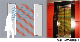 光幕门保护装置 在电梯门口形成光幕屏障,对于进入其探测平面的人或物体能做出灵敏的反应,安全性能高,不必担心传统门触板对您的碰触,使进出更从容潇洒,在轿门所在平面具有密集的红外光幕,人眼无法看见,使电梯入口更加美观。